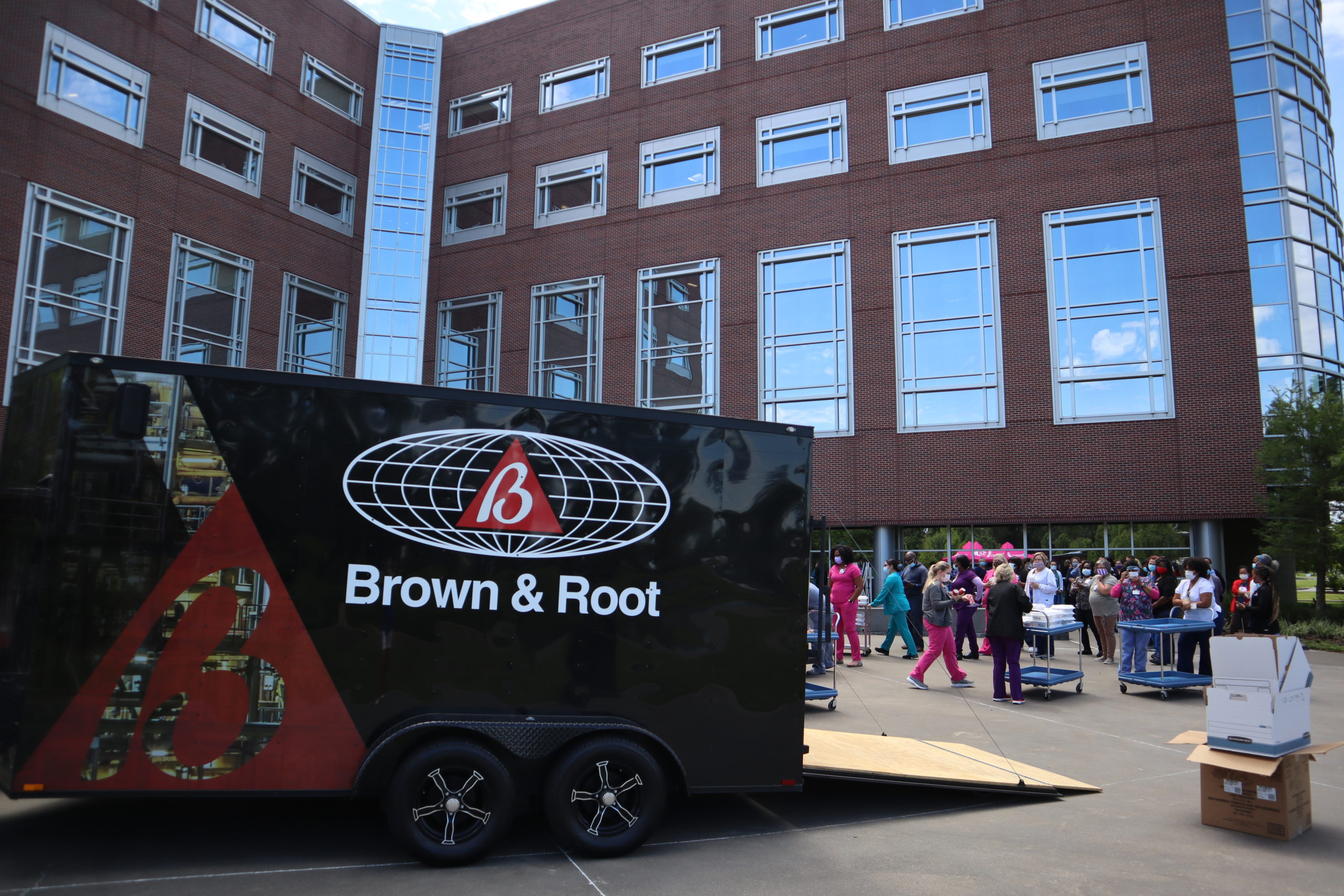 The day began early for our cooks as they prepped thousands of servings of Cajun cuisine for the heroes. Dozens of volunteers then arrived to assemble the entrée, sides and desserts and then load them on to trailers, SUVs and pickup trucks. Delivery volunteers then drove all over the Baton Rouge area to provide lunch for and to thank the health care heroes.