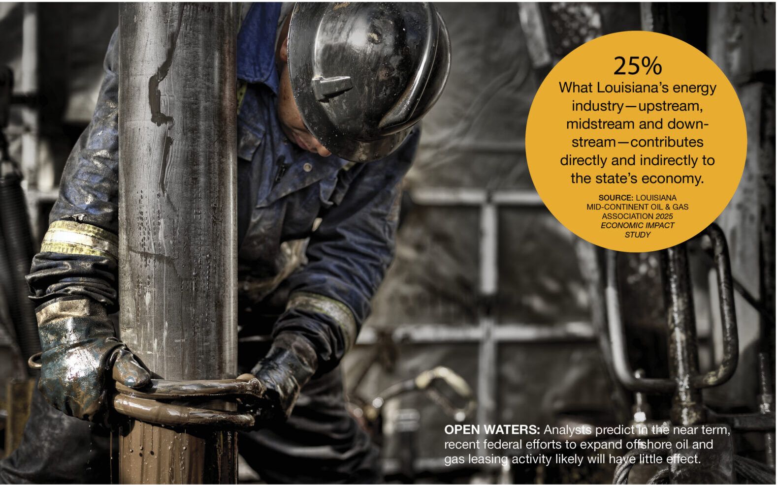 In LMOGA’s recent 2025 Economic Impact Study, economist Stephen Barnes found that Louisiana’s energy industry—upstream, midstream and downstream—contributes directly and indirectly to some 25% of the state’s economy.
