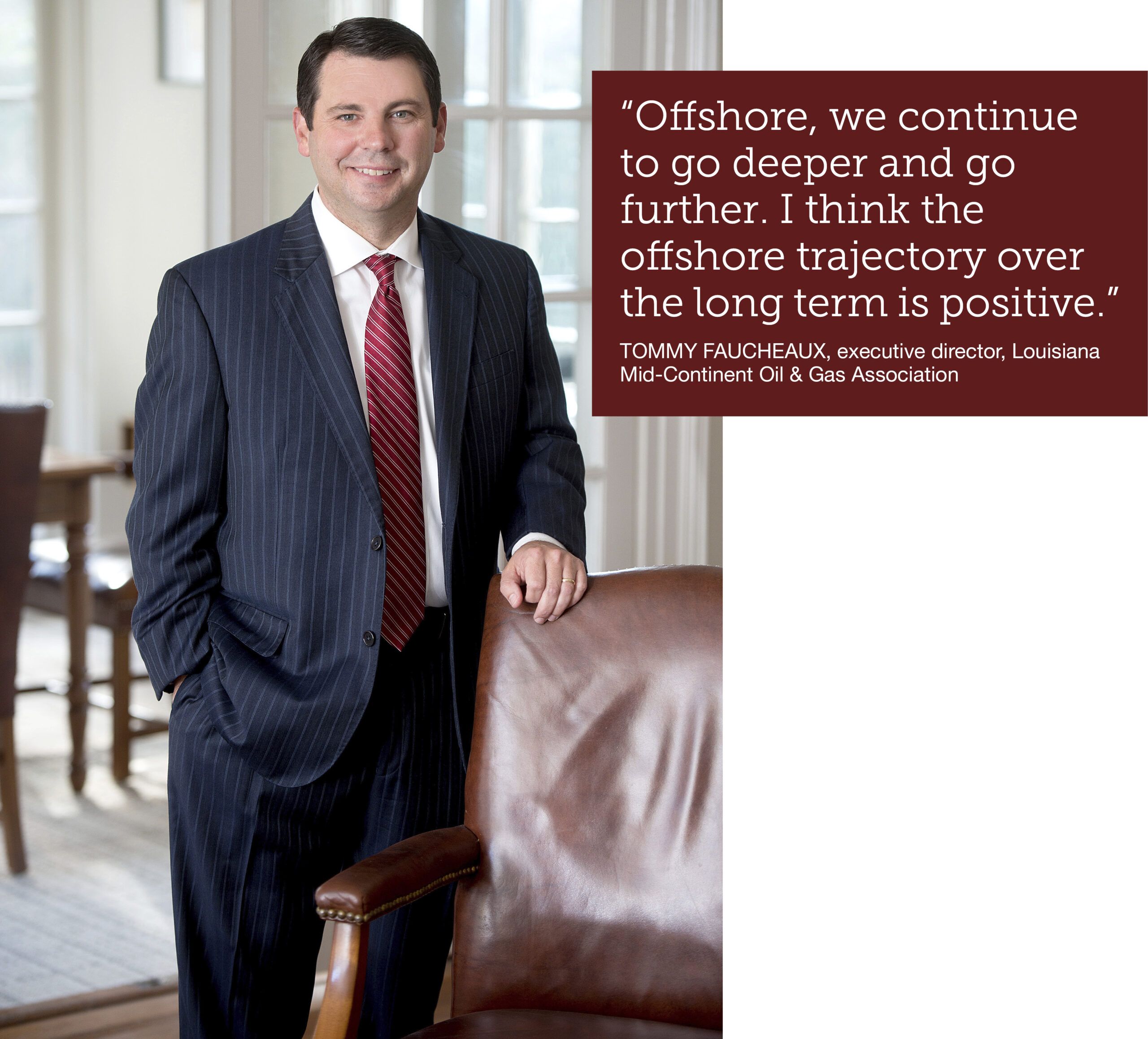 “Offshore, we continue to go deeper and go further,” says Tommy Faucheux, executive director of the Louisiana Mid-Continent Oil & Gas Association. “And now that we’re clearly headed back to a place of predictable federal offshore leasing, I think the offshore trajectory over the long term is positive.”